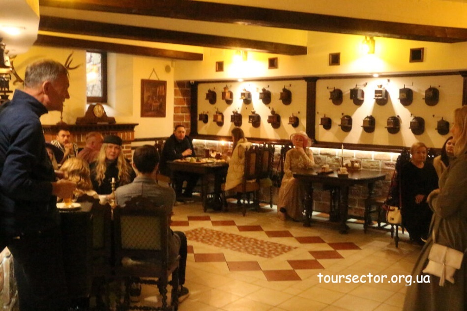 Зробивши вступ біля таблиці з ретросвітлинами курорту біля міської ради, Микола Іваник повів гостей до «Клюберґа» – закладу, який вже давно полюбився і місцевим, і відпочивальникам. Розповідь краєзнавця стосувалася не лише цього ресторану, а всіх харчевень курорту до 1939 року: де вони знаходилися, хто були їхні власники, якими родзинками вабили гостей-кураційників, які страви там подавали і навіть скільки ці страви коштували – про все це пан Микола знає добре, і цими знаннями щиро ділився з учасниками екскурсії. В затишній атмосфері «Клюберґа» під єврейські мелодії «Хави Нагіли» та «Сім сорок» так і хотілося посмакувати стравами пишної галицької кухні, яку так добре зобразила Софія Андрухович у своєму творі «Фелікс Австрія», екранізованому в фільмі «Віддана» (режисер Христина Сиволап). Кармонадлі, кнедлі, цинамонові марципани, ґаляретки, зупи, росоли, соси, печені, клюски, калярепи і каляфіори, бішкопти та лєґуміни – тільки назви чого вартують. Добра стара галицька кухня тому й добра, бо ввібрала в себе найліпше з української, польської, австрійської та єврейської кулінарії, не забуваючи запозичувати новинки з-поза Австро-Угорщини.