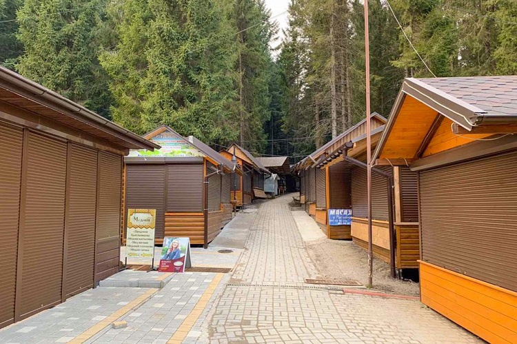 Сувенирный рынок закрыт, только карпатские наливки можно приобрести ..