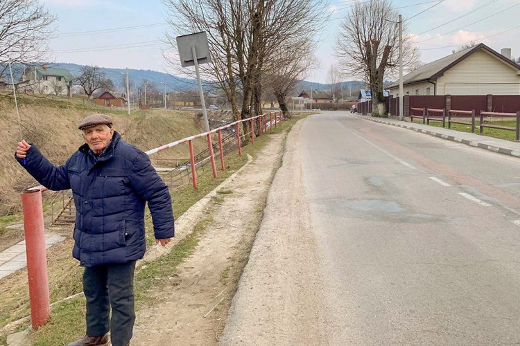 Местный дедушка говорит, что не боится никаких вирусов. Его защищают горы и Нафтуся. А как надо будет, то, мол, прогонит беду вот так прутом) ..