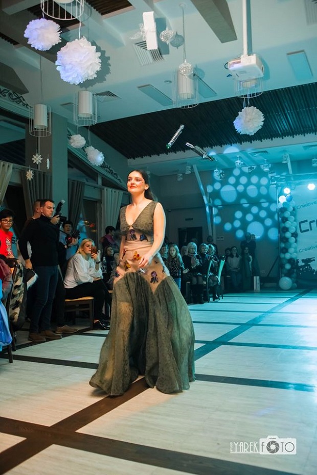 А дальше произошло одно важное открытие, которое приблизили Трускавец до статуса культурной столицы региона. В зале угасший свет, зазвучала ритмичная музыка и начался показ дизайнерской одежды от бренда LS Lesia Semi. Далее комментирую как настоящий мужчина. Никаких надстроек и извращений мы не увидели. Для публики было представлено достаточно элегантные варианты одежды, большинство из которых можно применять во многих сферах жизни. То есть вполне элегантно и практично. По завершению показа на импровизированный подиум появляется и сама кутюрье — Леся Сэмми. И казалось бы, а что тут такого. Однако три момента выделяют это событие среди других. Во-первых, в нашем крае не так часто происходят показы мод, во-вторых мы могли увидеть коллекцию, которая видимо уже известна не только в Украине, но во многих странах мира, в-третьих, идея этой коллекции таки корни из Трускавца , ведь родиной Леси Семи является именно наш курортный городок. Стоит отметить, что в этот вечер со временем мы увидели еще один показ вечернего наряда. И он был еще пышнее, чем предыдущий. Отдельно хотелось бы акцентировать внимание на организации формата показа. Это было настоящее мини-шоу с четким сценарием, которое завершилось вручением подарков от бренда для присутствующих в зале.