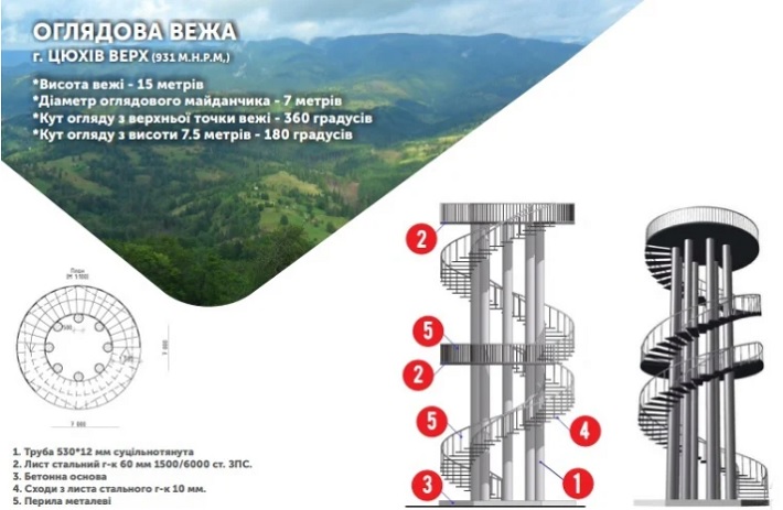Буковыця — гора Цюхив Верх. Легкий маршрут, на котором будут обустроены две зоны отдыха. На конечной точке маршрута — горе Цюхив Верх (931 м) — будет установлена 15-метровая смотровая башня, откуда можно осмотреть хорошую панораму окрестностей.