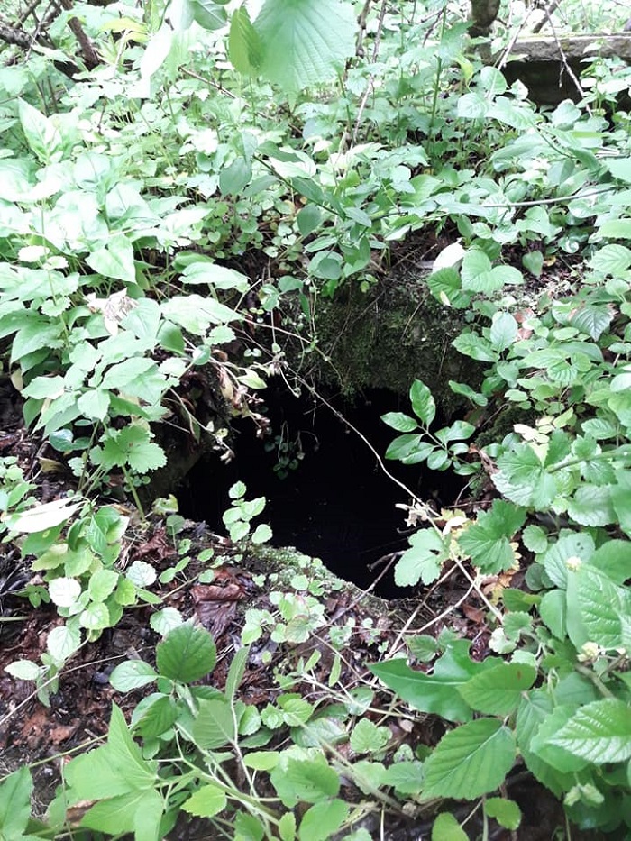 Осенью прошлого года (2018) я нашел ее, чуть не провалившись. Когда мерил палкой, то она застревала более чем на полтора метра в глубину. Так что это довольно опасно туда заходить, потому что можно провалиться.