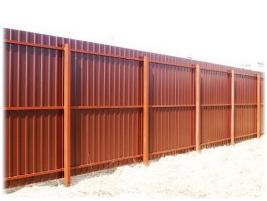Для забора подойдет стеновой профнастил. Он имеет необходимую жесткость и сравнительно недорогой, в отличии от кровельного и несущего типа. При покупке нужно искать такой лист по маркировке: С8 – С21. Буква «С» обозначает что лист стеновой, цифра — высоту трапеции от 8 мм до 21 мм. Практика показывает, если в месте установки забора есть сильные или даже штормовые ветра, стоит брать тип С21, иначе после года-двух эксплуатации на верхней кромке забора могут появиться заломы и вмятины. Закупить профлист можно напрямую у производителя, во Львове одна из таких компаний ТОВ «Профнастил-Захід», в Умане ТОВ «СПМ».