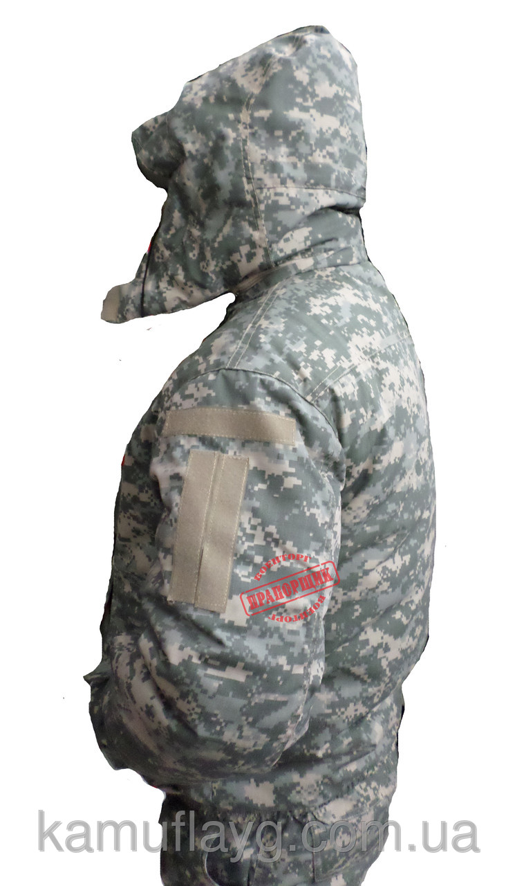 Утеплителем служит гусиный пух. Он и по сей день считается лучшим утеплителем для зимней одежды, поскольку очень мало весит, имеет длительный срок службы и отличные теплоизоляционные характеристики. Куртка имеет теплый высокий воротник, к которому крепится утепленный капюшон с удобной регулировкой. Все швы дополнительно проклеиваются водонепроницаемой тканью, а куртка оснащается стягивающим фиксатором, позволяющим отрегулировать длину по своему росту. Нижняя часть дополнена снегозащитной юбкой, которая прижимается к телу и не позволяет снегу попадать под одежду даже при езде на снегоходе.