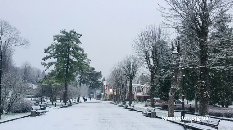 Улицы курорта припорошило первым снегом, однако из-за плюсовой температуры, он быстро таетЗа прогнозами синоптиков, уже со среды, 4 декабря, столбики термометров поползут вверх, к концу недели сохранится солнечная погода. Существенные снегопады придут в регион с середины декабря.