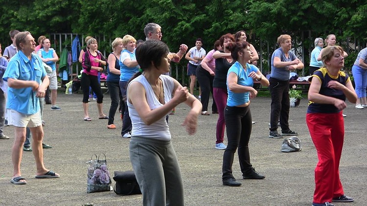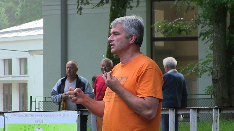 Двадцать минут восьмого, а курортный город Трускавец — уже не спит! Сотни отдыхающих собрались возле старого бювета. Нет, не воду пить, нет, не на митинг, а на утреннюю зарядку. Ее, на этом спортплощадке, для бодрых и оптимистично настроенных граждан организовал президент Клуба счастливых людей Сергей Розора.