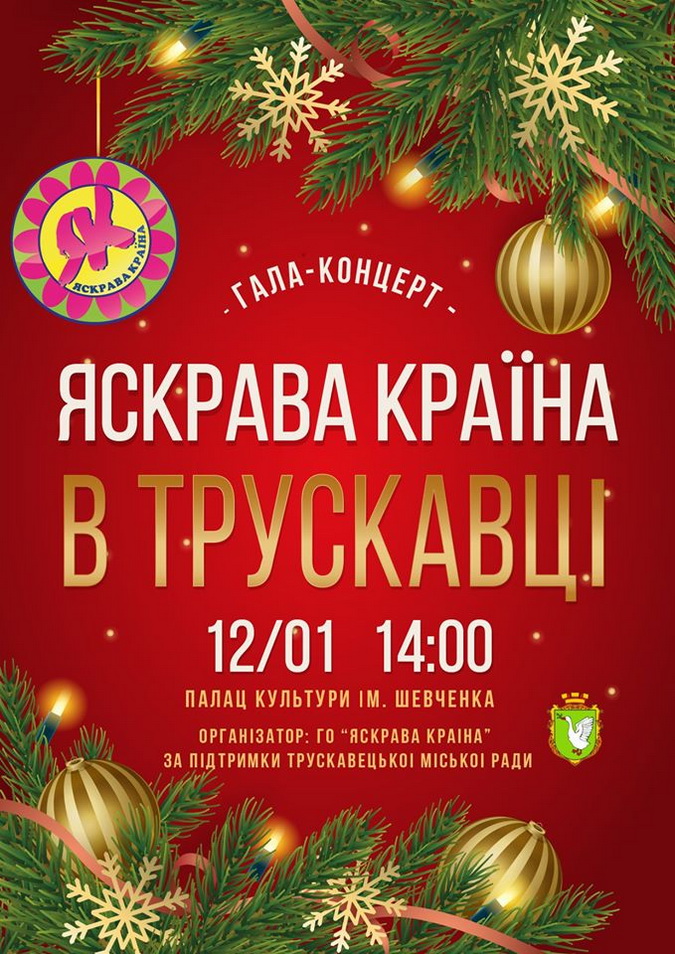 Как и было запланировано, главное событие «Яркой страны в Трускавце-2020» — торжественный Гала-концерт — пройдет в воскресенье, 12 января, в 14.00 во Дворце культуры имени Т. Шевченко. В программе — выступления участников фестиваля и членов жюри — певцов, народных и заслуженных артистов Украины, а также награждение победителей фестиваля. Вход — свободный. Приглашаем!