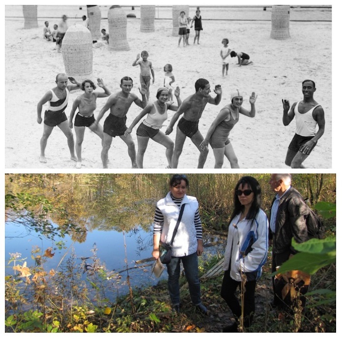 Обогнув остатки бассейна, в котором остались деревянные столбцы которые разделяли озеро на купальную и зону отдыха для водных прогулок, а также остатки для приспособления лодок и каяков, мы вышли на противоположный берег пруда. От остальной курортной инфраструктуры тоже не осталось ни следа.